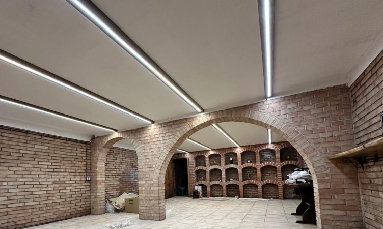 Na Jižní Moravě máme rádi naše vína a do vinného sklepa to nemáme daleko. I ve vinném sklepě se však musí svítit. Největším problémem je však vysoká vlhkost, srážení vody na stěnách i ve svítidlech a to i s vysokým krytím. Vinný sklep v Horních Věstonicích je rozsáhlý nejen výrobními, ale i prezentačními prostorami. Zde jsme museli klást důraz nejen na praktičnost, ale i dizajn svítidel. Zvolili jsme světelné linie v hliníkových profilech s kvalitními LED pásky zalité ve speciálním silikonu, abychom docílili krytí IP67, zabránili průniku jakékoliv vlhkosti a docílili vysoké osvětlenosti. V tomto provedení počítáme, že osvětlení bude majiteli sklepa řádně složit desítky let.
